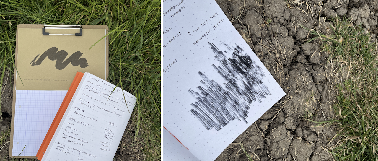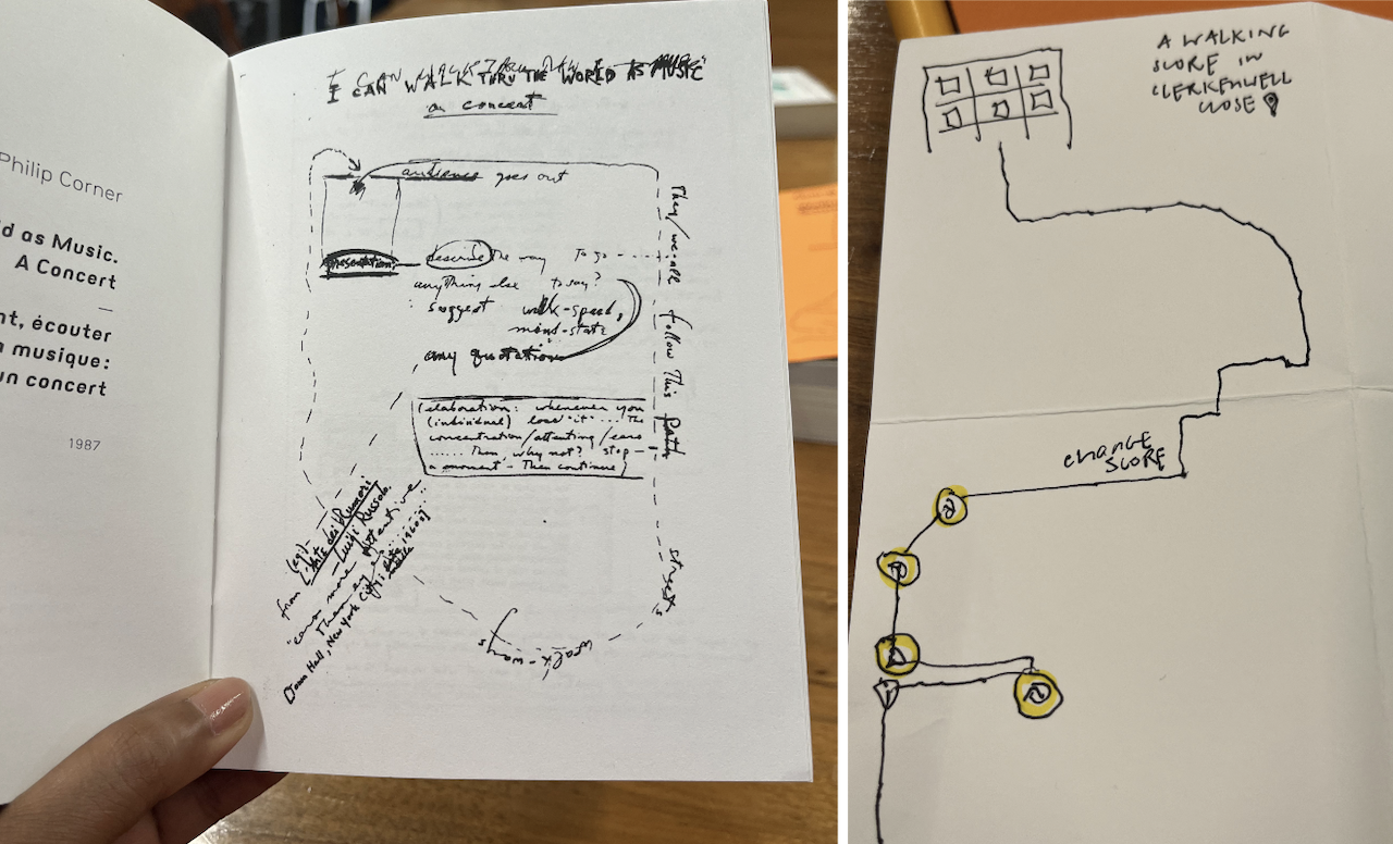 Led by Fieldnotes, this exercise focused on the themes of walking and delving into place-based writing using approaches like concrete poetry, psychogeography, and mark-making. This experience has opened up new avenues to explore in my research, particularly in relation to observing the sonic qualities of a place through slow, long-durational listening and prompt-based writing.
