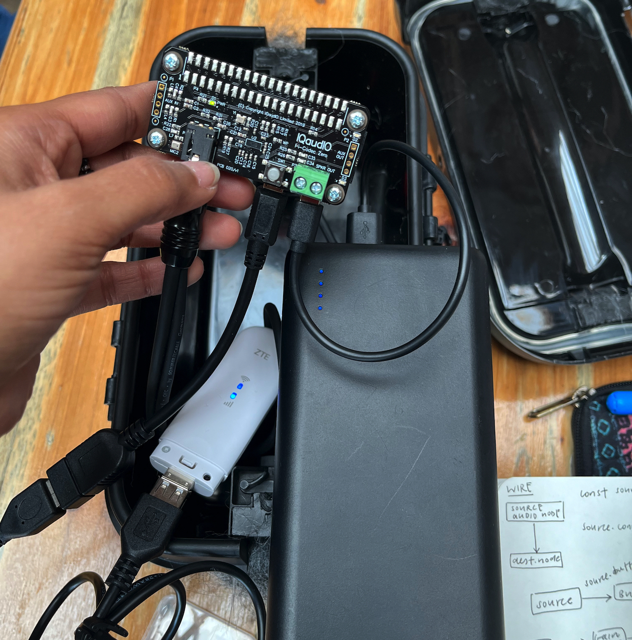 We assembled a streambox built with a Raspberry Pi, audio sensor, and a microphone that captures and streams sounds in real-time over the radio. I used the device on a short data walk around the neighbourhood to capture ecological sounds, noticing how sensors like these can reduce the overwhelm and anxiety of capturing information during sensory walks.